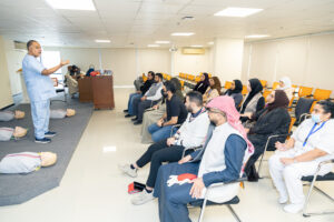 وهدفت الدورة إلى إعداد فريق مؤهل للتعامل مع بعض الحالات الطارئة التي قد تحدث في بيئة العمل، إضافة إلى توعيتهم بأهمية الإسعافات الأولية ودورها الحيوي في إنقاذ الأرواح وتقليل المضاعفات الناتجة عن الحوادث أو الحالات الصحية المفاجئة، مثل الإغماء والكسور والحروق والنزيف وحالات الاختناق.