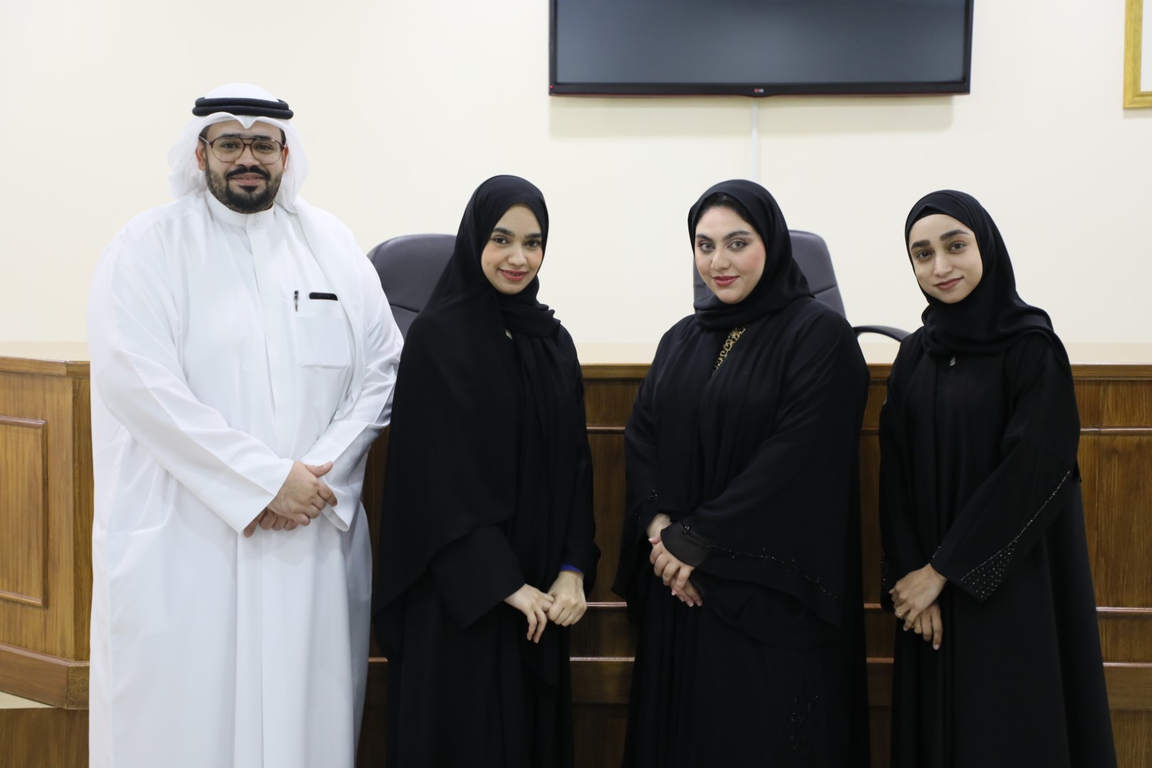 The team of the College of Law at Kingdom University included the membership of a group of creative students who were able to prove themselves and qualify for the final stage, namely: Waheeb Nabil Al-Musaifer, Maryam Nabil Al-Musaifer, Sarah Baqir Al-Wadaei and Bushra Abdul Reda Mashhadi. The team was trained and supervised by Dr. Abdul Basit Al-Hakimi, Head of the Public Law Department at the College of Law.