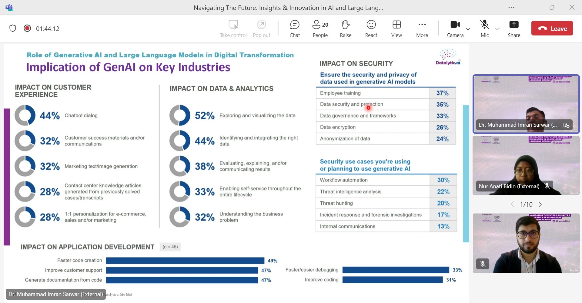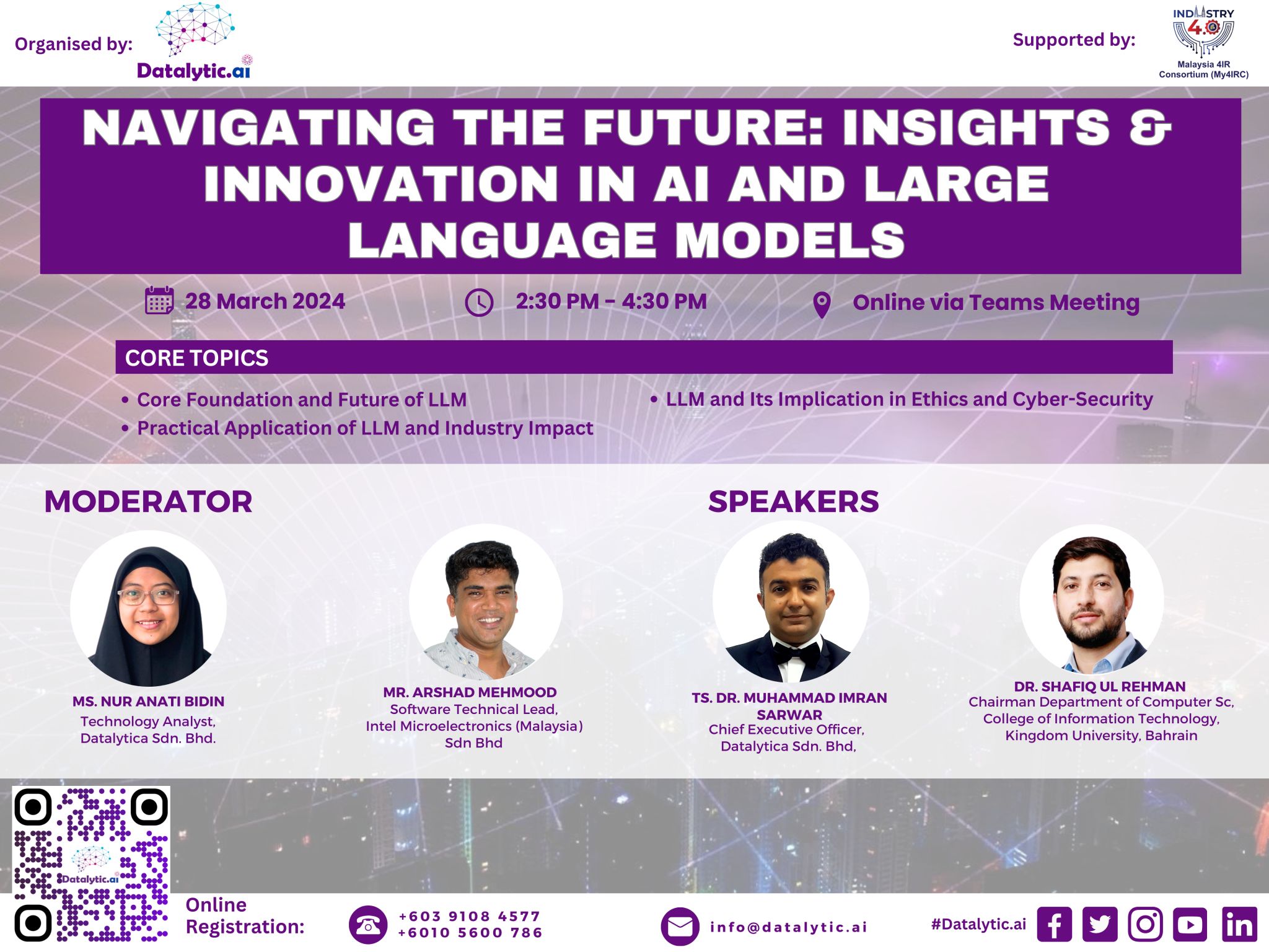 Dr. Shafiq recently gave a presentation entitled “Navigating the Future: Insights and Innovations in Artificial Intelligence and Large Language Models” at a webinar that was held on a global scale. Language Learning Models (LLMs) are the subject of his presentation which investigates the ethical concerns that arise from potential security vulnerabilities. Since these complex digital repositories are becoming more and more intertwined into our everyday lives, they are attractive targets for assaults that have the potential to jeopardize their training data as well as the confidentiality of their data sources. Additionally, he dives into the complex ethical ramifications that such security concerns have on society as well as on the privacy of individuals.